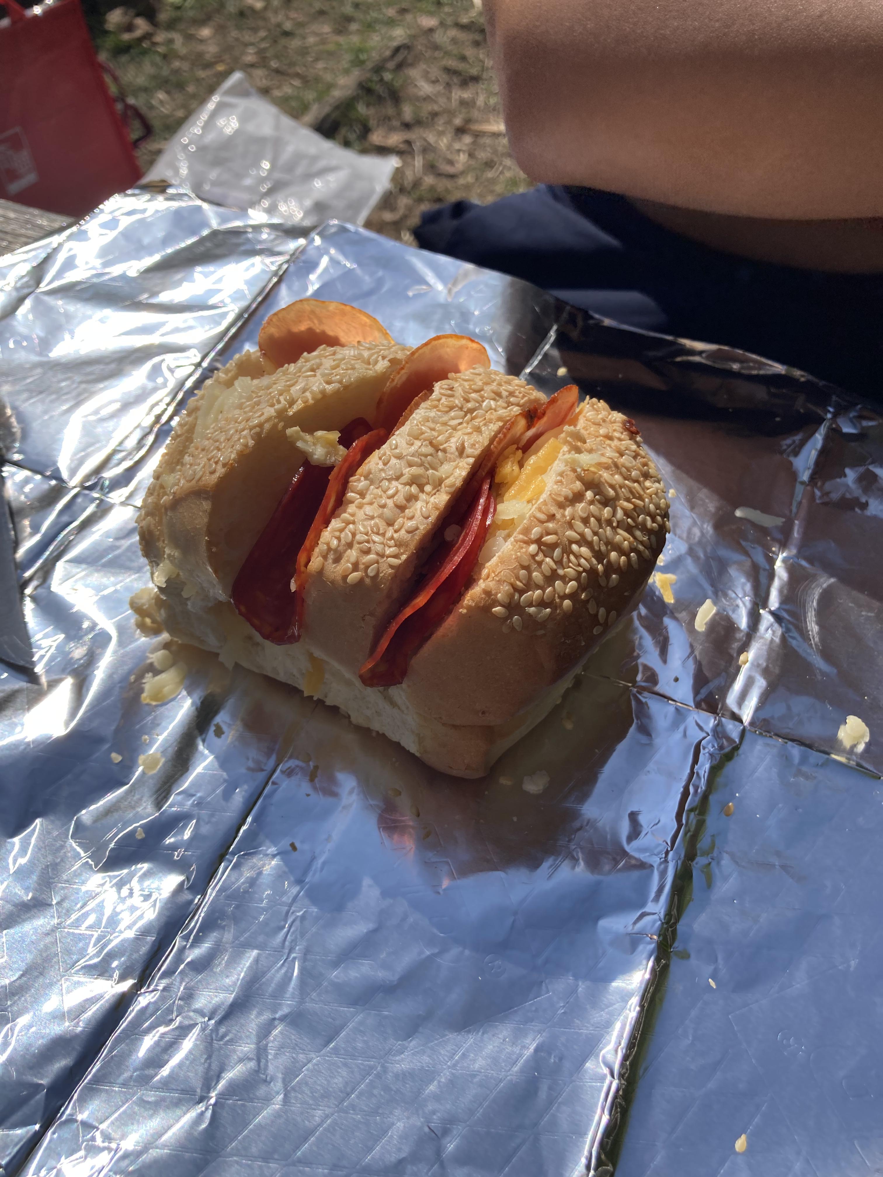 Lunch – Prosciutto and Salami on a cheese roll